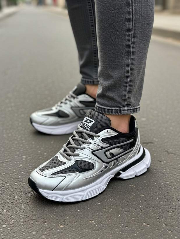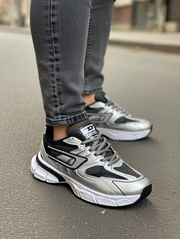 کتونی مردانه مدل دیزل رنگ مشکی نقره ای