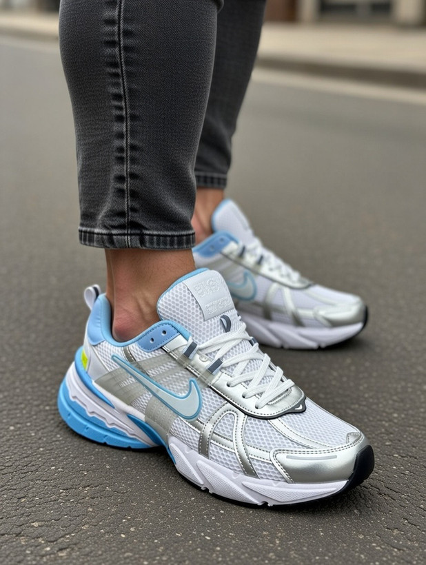 کتونی مردانه برند نایک مدل v2k رنگ سفید فیروزه ای (هایکپی )